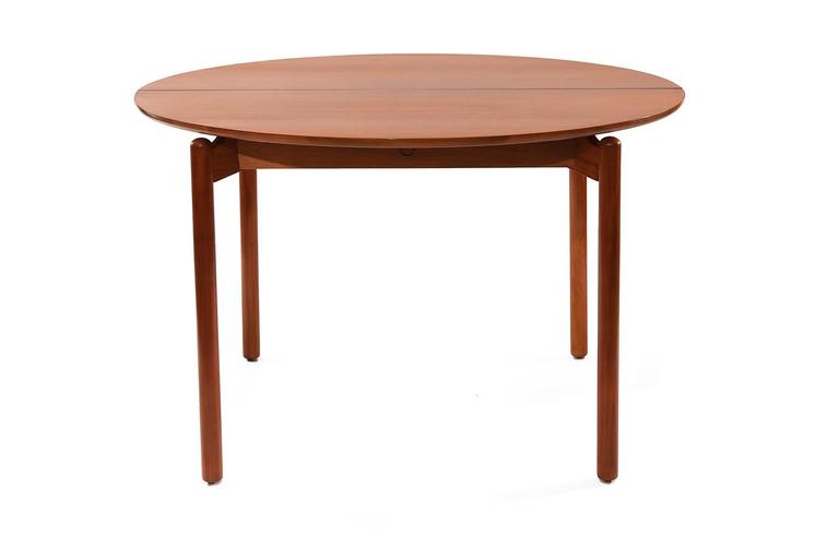 Dining table measures: H-28″ x diameter-44 7/8″, leaves- D-11 3/4″ per leaf.